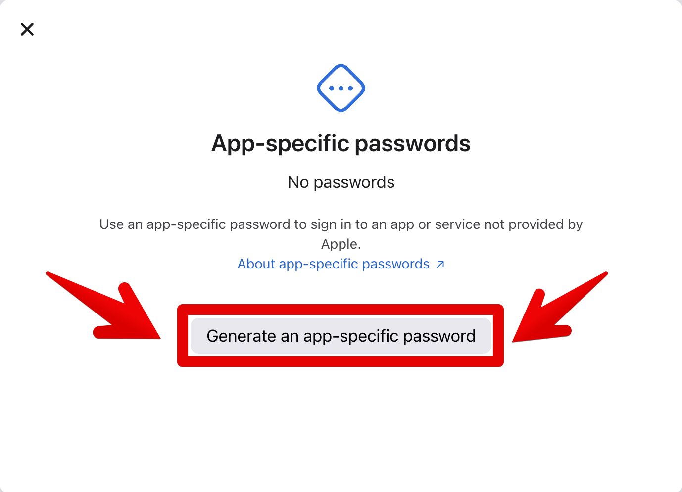 - Click on "Generate an app-specific password", then follow the steps on your screen.