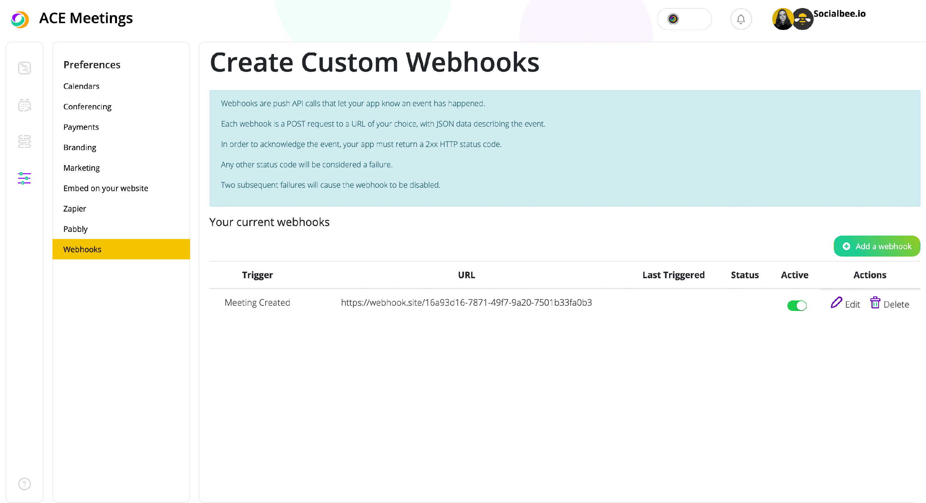Once you did that, you will be all set! You will be able to set the webhook to be active or to be paused, or you can edit and delete it whenever.