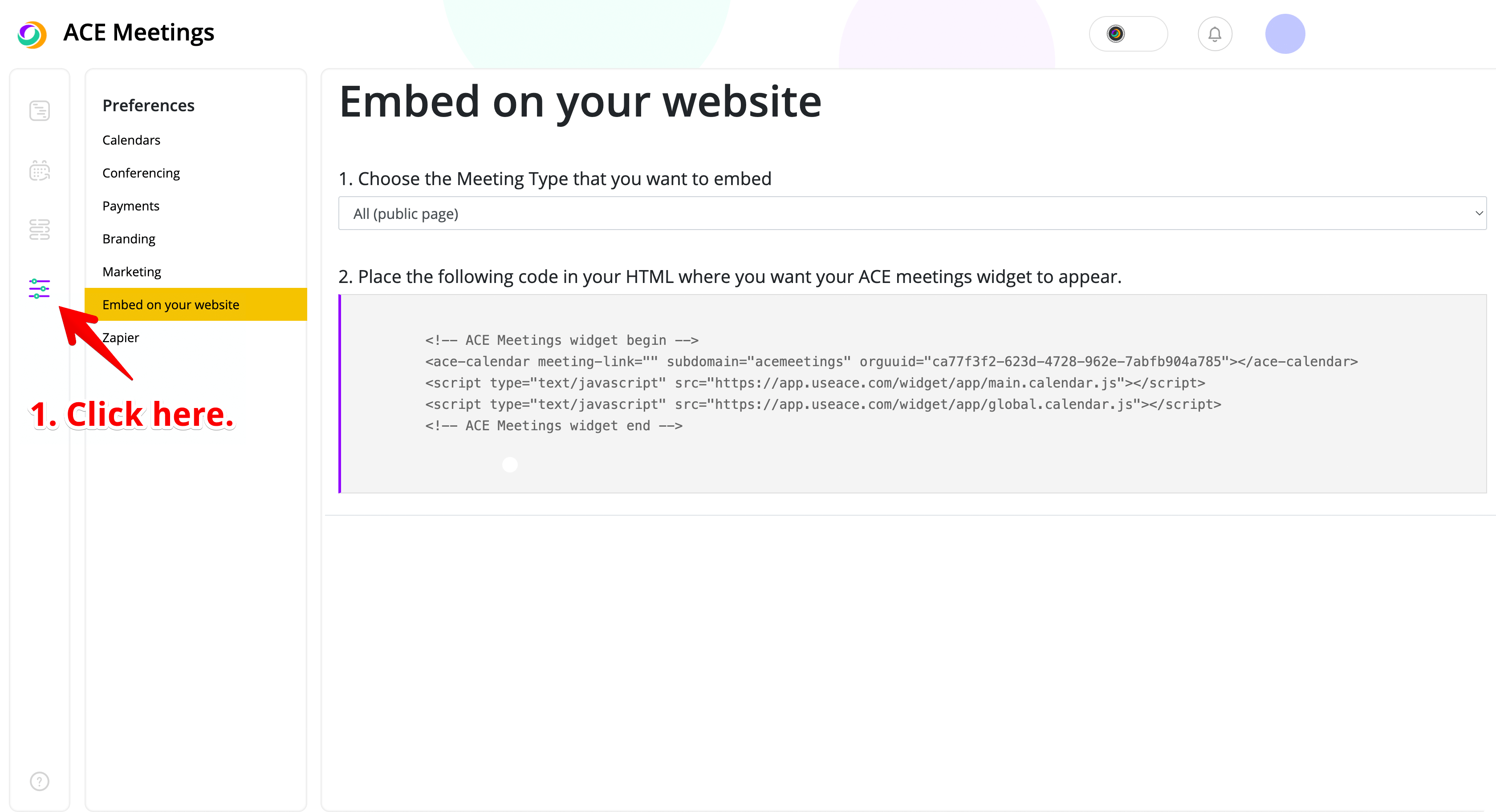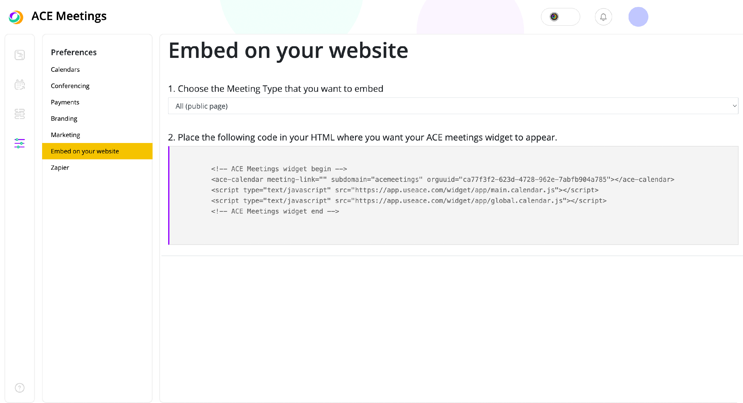 If you want to add your ACE Meetings calendar directly to your website, you can easily do this by embedding our widget anywhere on your website.