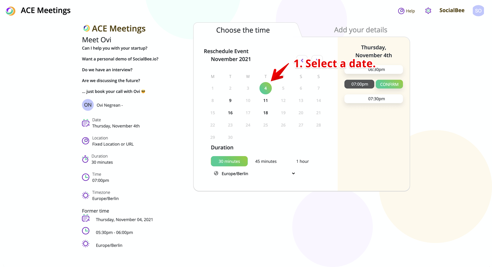 You will be redirected to a new page, where you have to choose a new date from the calendar.