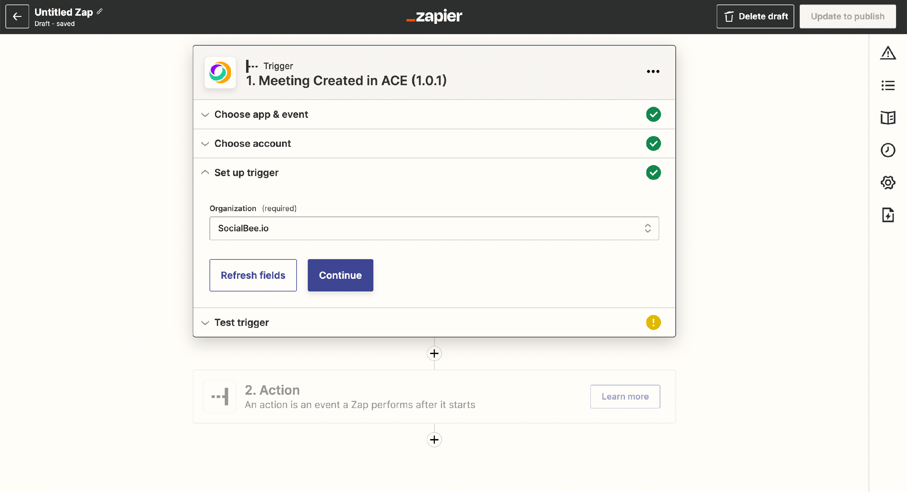 Once this is finalized and if your trigger test is successful, you will be able to move on to the second step of your Zap and customize it according to your needs.