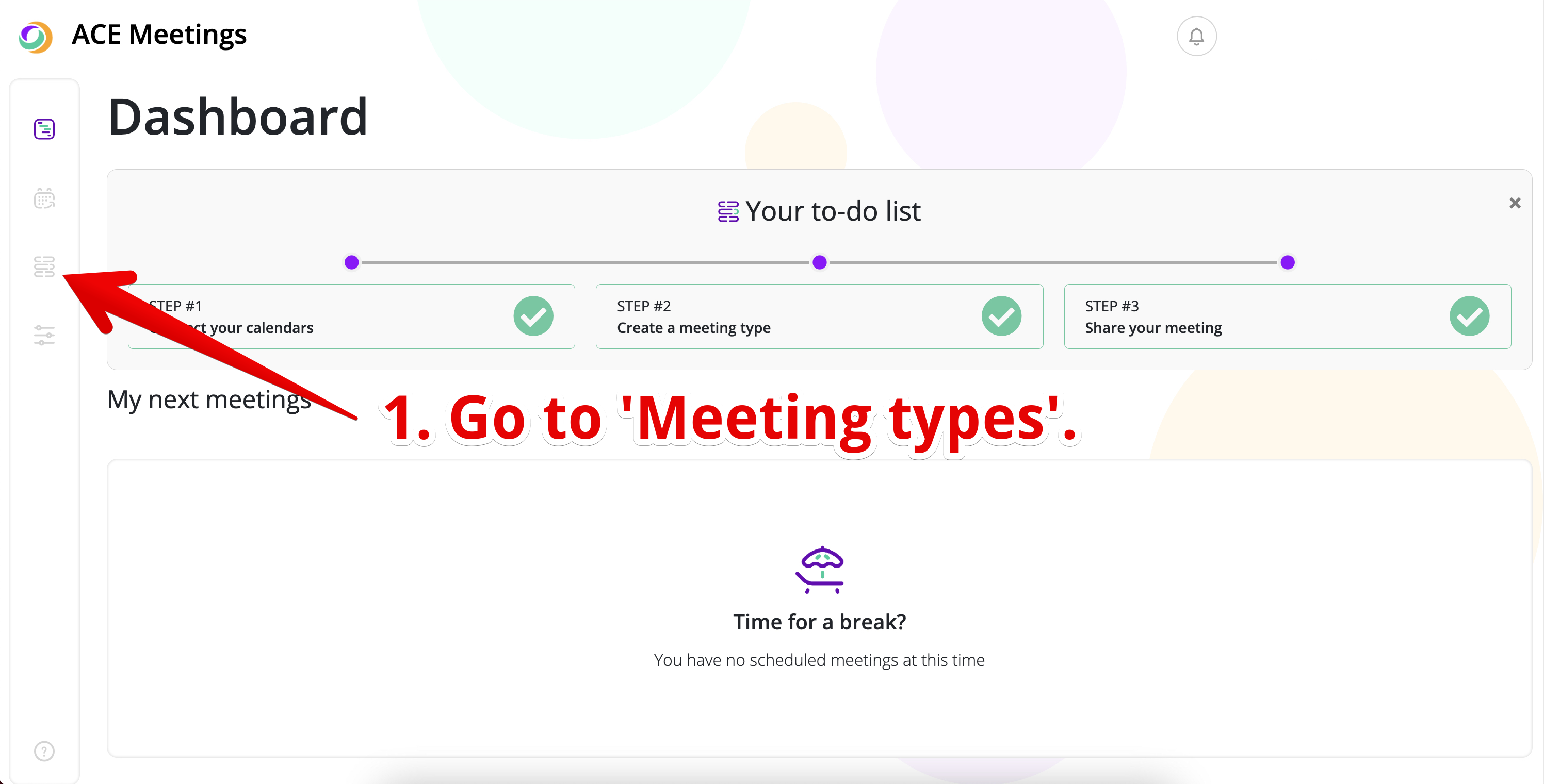Go to your ACE Meetings Dashboard and click on "Meeting Types" in the left-side menu.